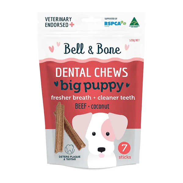 Bell & Bone's Beef and Coconut Puppy Dental chews small is specially designed to support your puppy's overall dental health and reduce the risks of dental disease. This dental treat...