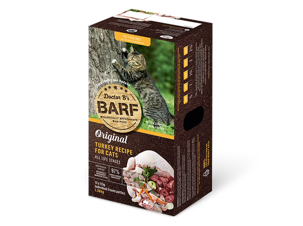 Dr b's Barf Turkey Cat Food Turkey meat contains a high level of essential amino acids for strong muscles and healthy cells, including tryptophan, precursor for serotonin (the ‘happy hormone’)...