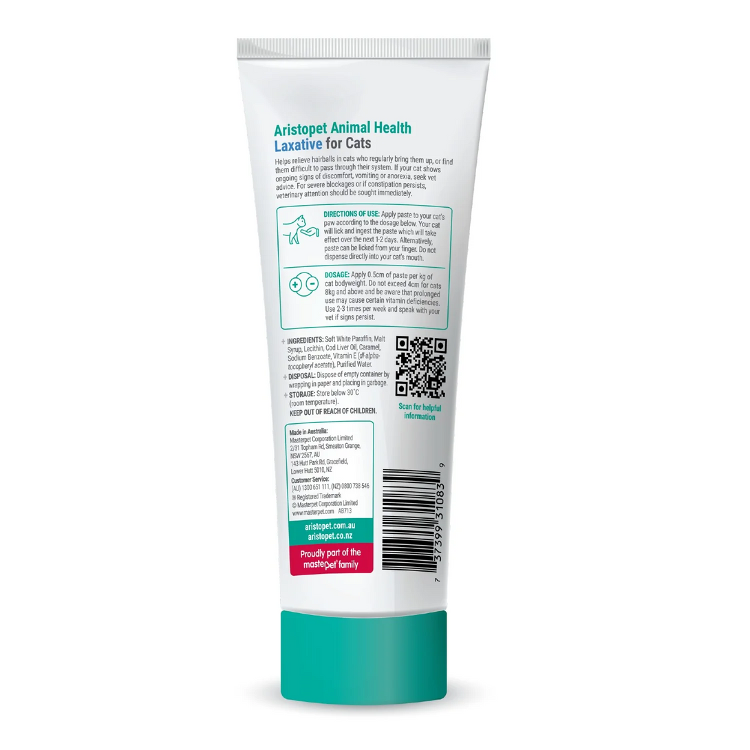 Aristopet Cat Laxative Paste is specially formulated to helps relieves hairballs and mild constipation incats and kittens. This Malt flavour laxative paste is easy to apply by its highly palatable. It can be given directly from the tube or mixed with food.