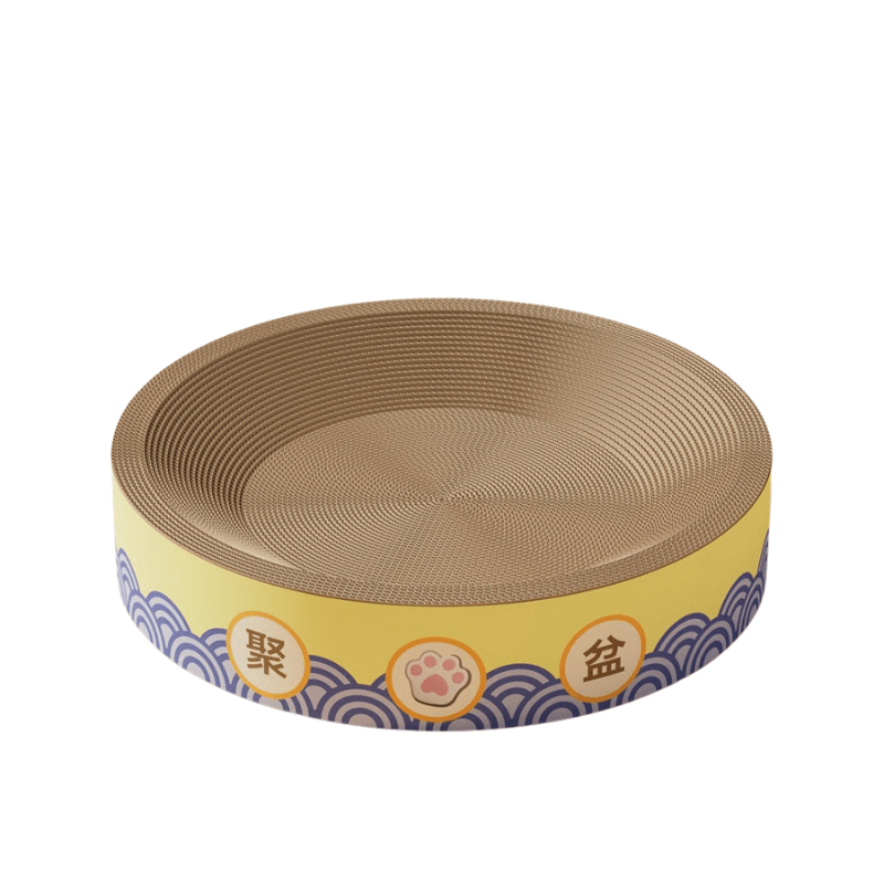 Introduce this incredibly comforable cat scratcher bed to your feline friends for a blend of fun and functionality. This cat scratcher is perfect for satisfying your cat’s instincts while adding a charming touch to your home. It is made with durable, eco-friendly corrugated cardboard, this round cat scratcher offers a comfortable spot for scratching, playing, or simply curling up for a nap.