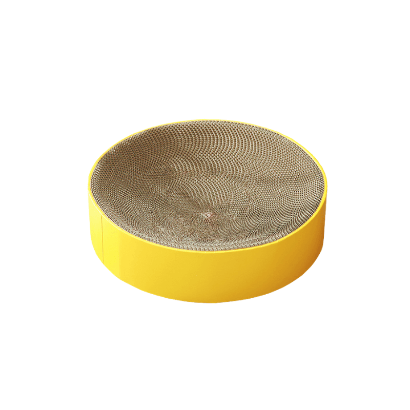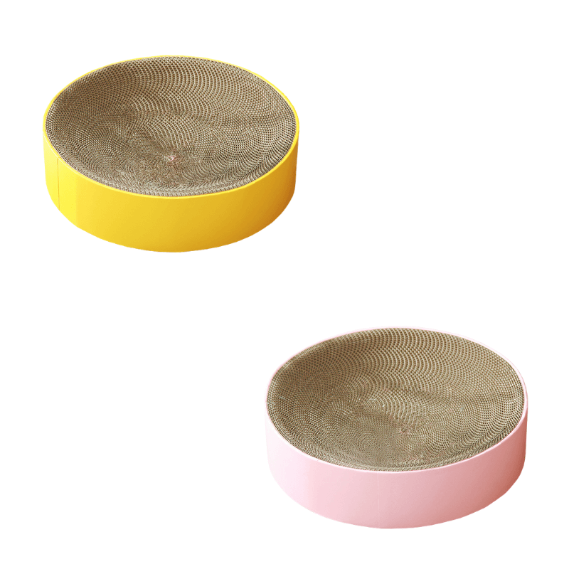 Introduce this incredibly comforable cat scratcher bed to your feline friends for a blend of fun and functionality. This cat scratcher is perfect for satisfying your cat’s instincts while adding a charming touch to your home. It is made with durable, eco-friendly corrugated cardboard, this round cat scratcher offers a comfortable spot for scratching, playing, or simply curling up for a nap.