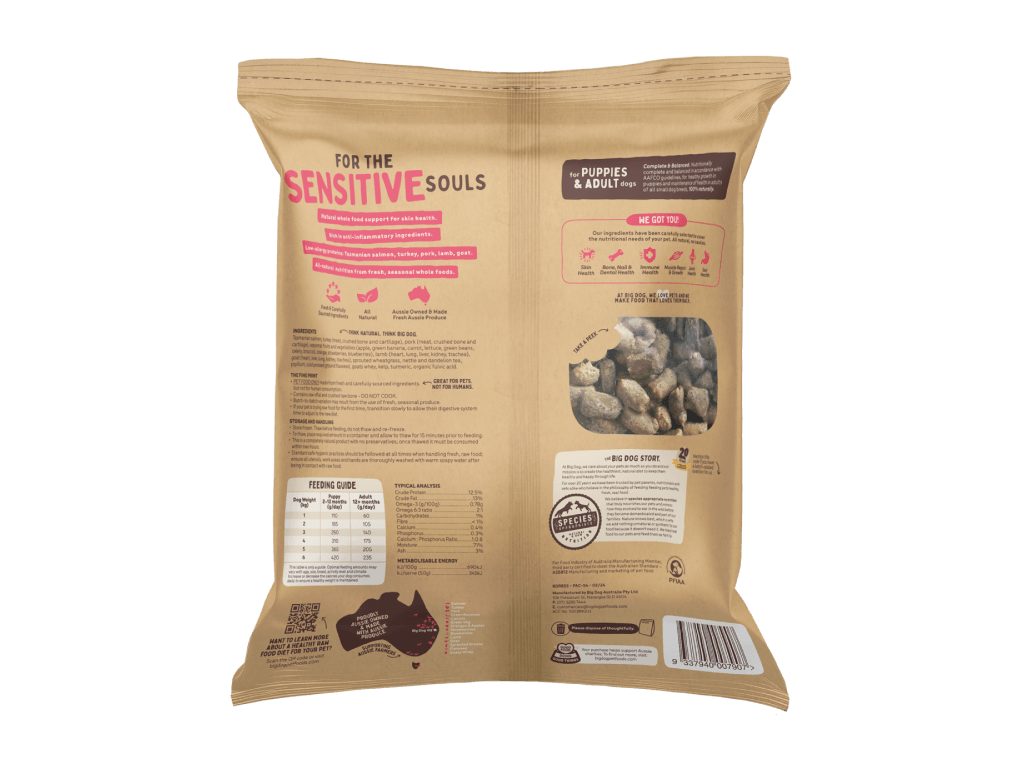Big Dog Barf Sensitive Skin Raw Bites Dog Food 1.3KG