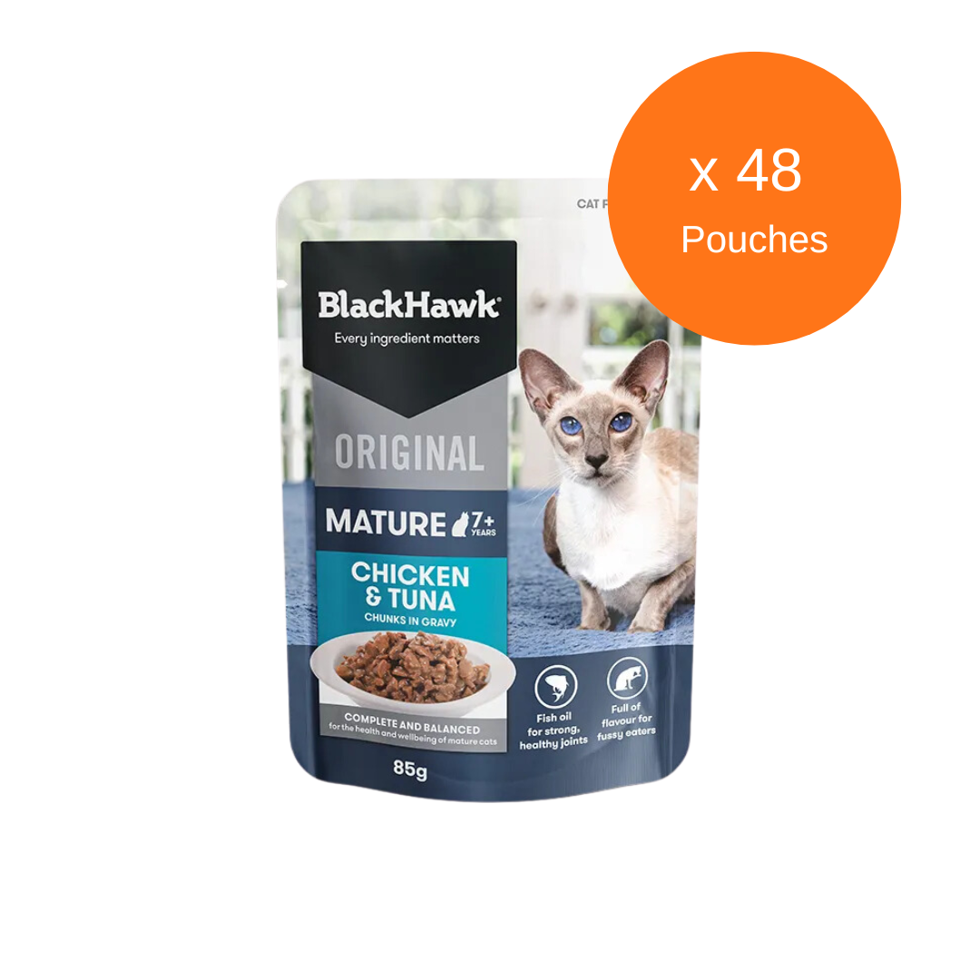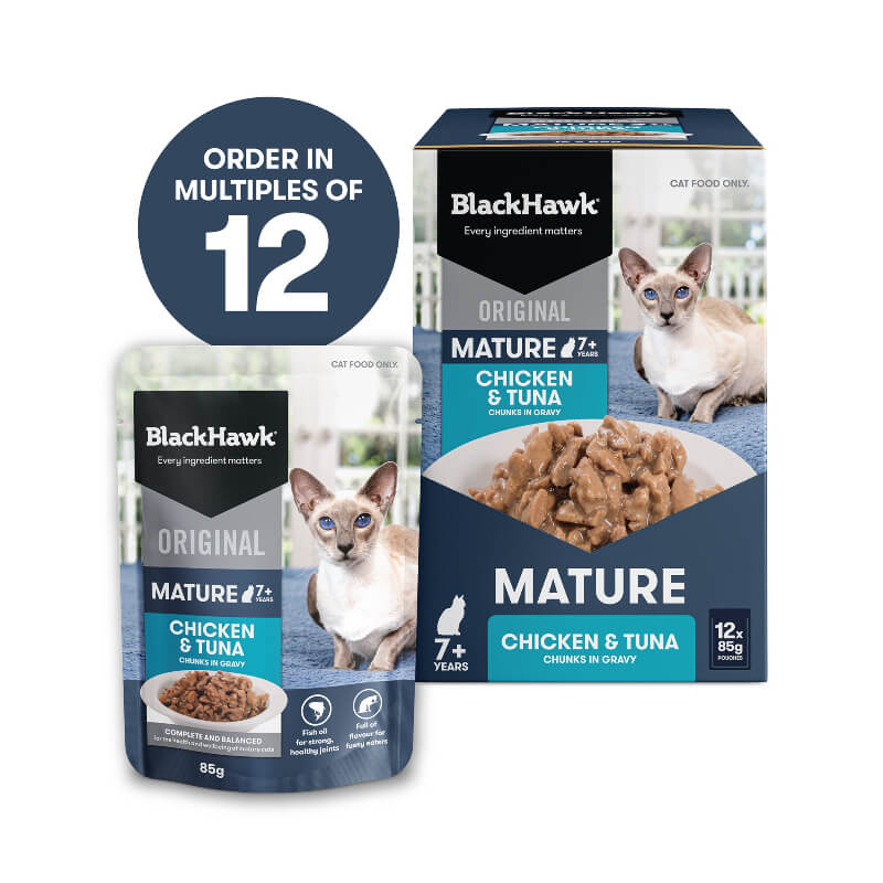 Order Black Hawk Chicken & Tuna Gravy Mature 7+ Wet Cat Food today from ADS Pet Store. Enjoy same-day delivery across Melbourne metro areas (selected postcodes) or convenient Click & Collect from our Moorabbin warehouse.
