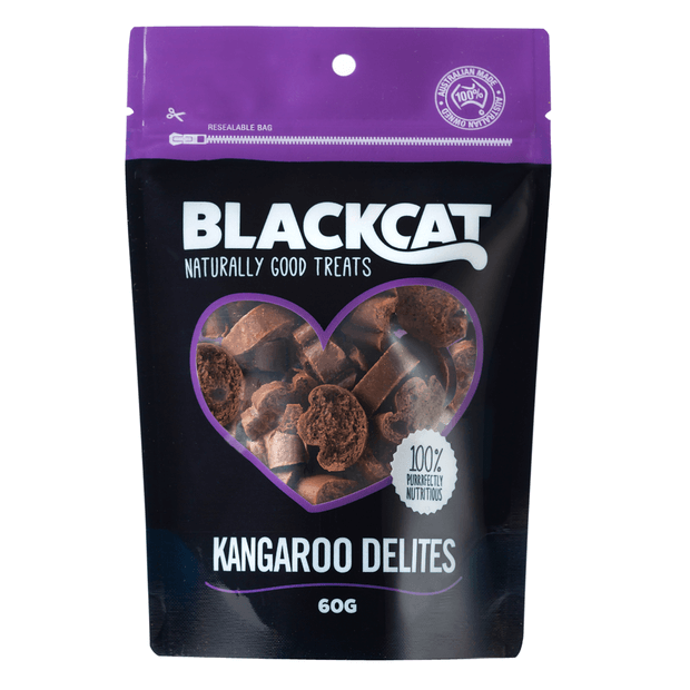 Pamper your feline friend with this healthy BlackCat Roo Delites Cat Treats. Each Pack is filled with high-quality, delicious treats made with real kangaroo meat, ensuring a protein-rich snack that your cats will love.