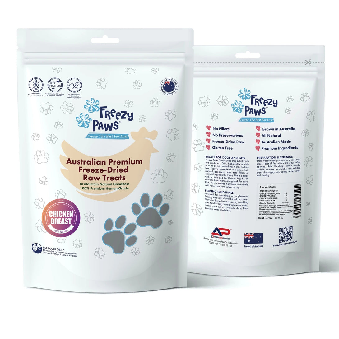 Freezy Paws Freeze Dried Chicken Breast Raw Treats for Dogs and Cats 100G