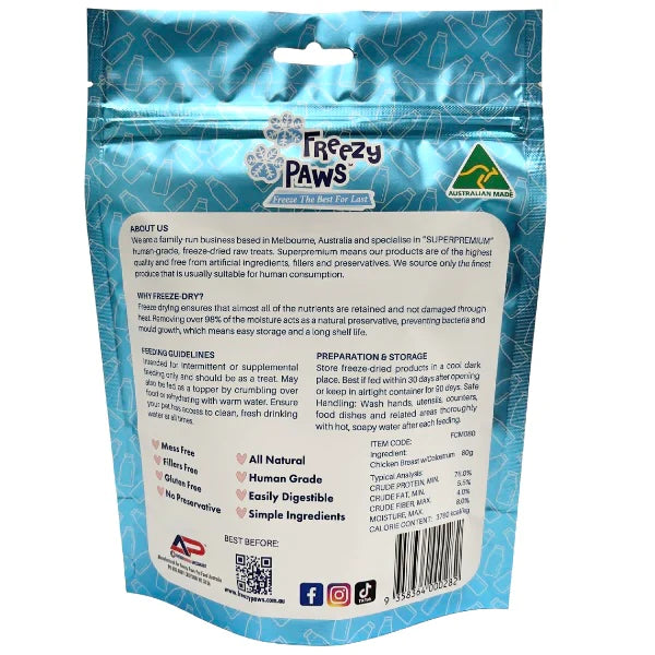 Freezy Paws Freeze Dried Raw Chicken Breast with Colostrum Treats for Dogs and Cats 80G