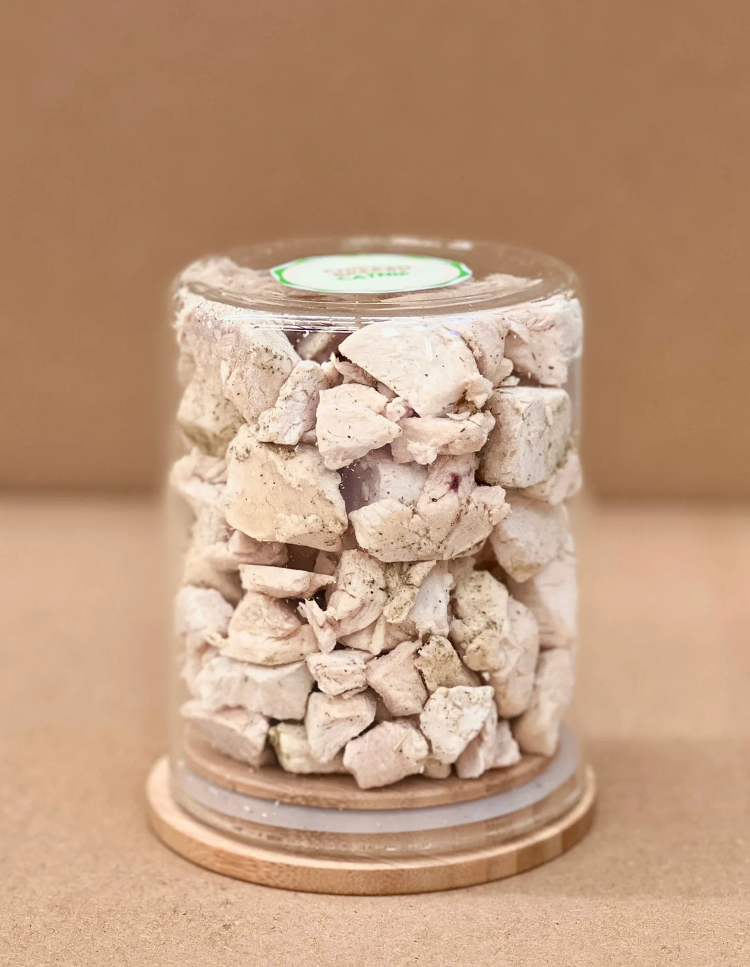 Our freeze-dried raw meat treats have never been cooked or processed in any form whatsoever. The superior freeze-dried method preserves food naturally, so there are no added chemicals or preservatives that are found in common pet foods and treats.