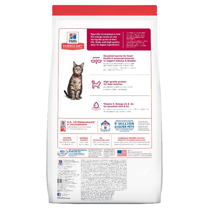 Hill’s Science Diet Adult Dry Cat Food Chicken provides precisely balanced nutrition to support the energy needs of adult cats during the prime of their life. Made with high-quality, easy-to-digest natural ingredients and real chicken as the first ingredient, it’s designed to keep your cat healthy, active, and satisfied every day.