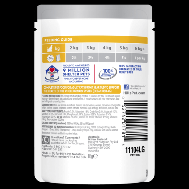 Hill’s Science Diet Adult Urinary Hairball Control Ocean Fish Cat Food Pouches 85g x12