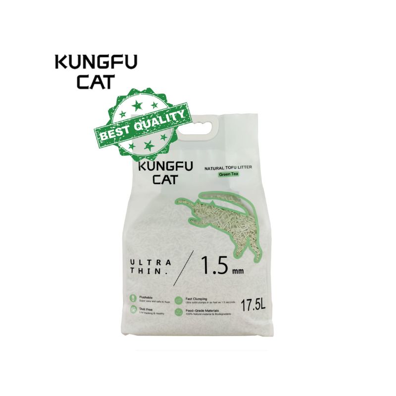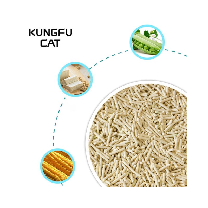 KUNGFU Cat tofu cat litter is a premium natural cat litter. This cat litter is a perfect choice for cat owners who prioritize environmentally friendly and pet-safe products. Tofu cat litter is made from all-natural ingredients, this natural cat litter exceptional absorbency by 1.5mm ultra-thin technology. Tofu cat litter is crated from biodegradable materials, providing a safe and non-toxic litter solution for your furry friends, especially for kittens. Added green tea powder and tea polyphenols provides a superior odor control.