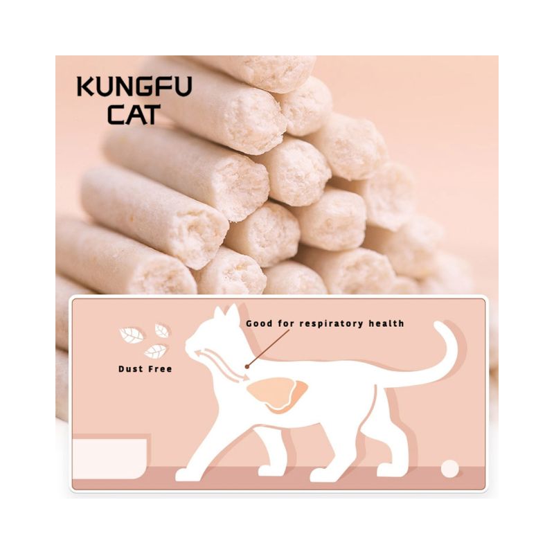 KUNGFU Cat tofu cat litter is a premium natural cat litter. This cat litter is a perfect choice for cat owners who prioritize environmentally friendly and pet-safe products. Tofu cat litter is made from all-natural ingredients, this natural cat litter exceptional absorbency by 1.5mm ultra-thin technology. Tofu cat litter is crated from biodegradable materials, providing a safe and non-toxic litter solution for your furry friends, especially for kittens. Added green tea powder and tea polyphenols provides a superior odor control.