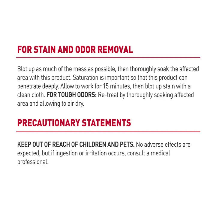- SPOT STAIN & ODOR REMOVER: Begins to break down and remove stains immediately on contact.