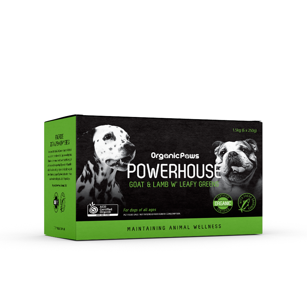 ORGANIC PAWS Raw Dog Food Powerhouse Goat & Lamb W’ Leafy Greens 1.5KG