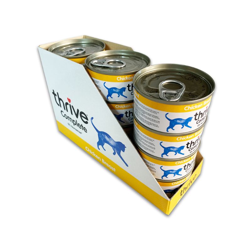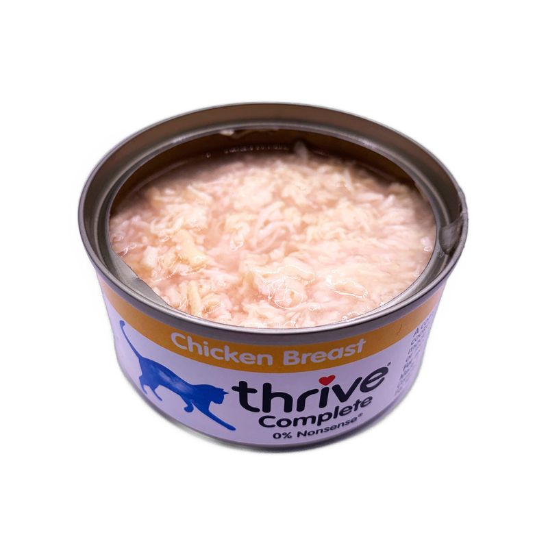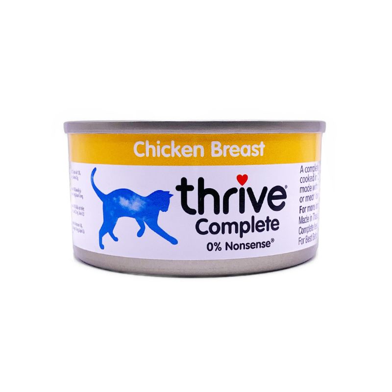 Thrive Cat Food is a premium brand that offers a range of high-quality and nutritionally balanced cat food options. Thrive Complete Chicken Breast Cat Wet Food is made by human-grade chicken breast, no substitutes and absolutely no ‘animal derivatives’. It is completely pure and free from artificial colours, flavours and preservatives, added sugars, wheat, gluten, dairy, soya and GM ingredients (you could say it’s what we leave out that makes us different).