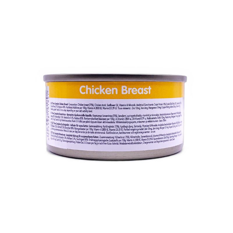 Chicken Breast (75%), Chicken Stock, Sunflower Oil, Vitamins & Minerals.
