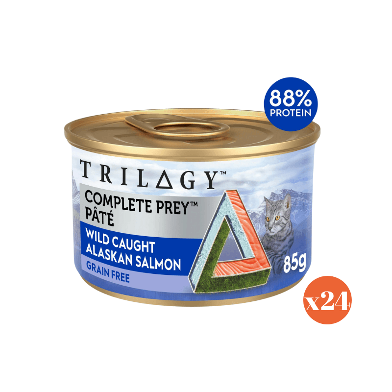 TRILOGY™ Complete Prey™ Pâté Wild Caught Alaskan Salmon delivers moisture-rich, prey-inspired nutrition for cats of all life stages. Made with premium wild-caught salmon and nutrient-dense organ meats, this smooth-textured pâté provides the nourishment your cat instinctively seeks—whether they’re roaming outdoors or relaxing inside your home.