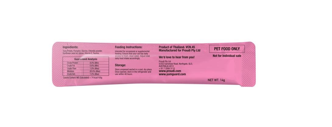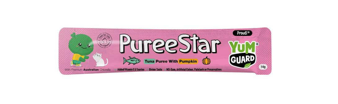 Give your cat a treat they'll love with YumGuard's Puree Star Tuna with Pumpkin - a nutritious snack packed with essential vitamins and minerals, including the renowned Chlorella growth factor for healthy tissue growth and repair. With its smooth texture and irresistible flavour, your feline friend won't be able to resist this tasty treat.